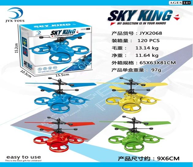 Запускачка арт. JYX2068 (60шт/2) індукційна, USB-зярядний пристрій, 4 кольри, літає, світло, короб. 16*5*18см